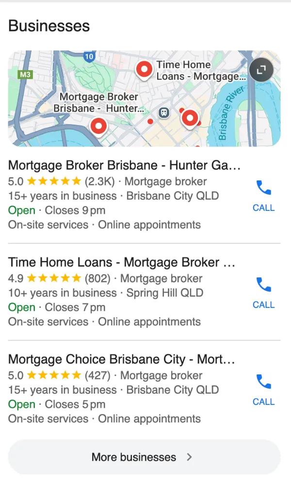 Securing top rankings in Google Maps to drive more high-intent phone enquiries from local area searches.